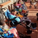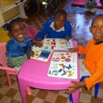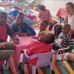 The smiles, laughter and different kinds of noises from our kids is an indicator of a home full of joy. With the children, we build blocks, try to hold pencils to write and try to learn how to read. Interesting because of the 10 children, only 2 can talk a bit and still none can walk. All the 10 are bathed each day and 9 use nappies/diapers. The 2 who can talk a bit have learned how to pray – using just a few wordsand they pray for every meal.