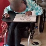 Godfrey has continued to exercise his leg after surgery, but he still cannot walk. He is able to stand with some support, but still needs continued therapy and we are doing that with him. Godfrey is very gifted with designs and we see it when he makes different designs with building blocks.